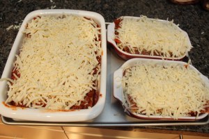 My sister and her fabulous clan will host our family on Christmas Eve and we’ll all enjoy our traditional lasagna and Cesar salad (and pizza for the kids just in case). I get to make the lasagna. This one I made a few days in advance, and tripled. Making extra for spaghetti for my family the night I cooked it, and storing away a spare lasagna for the 29th or 30th when I know I’ll just want to pull something out and pop it in the oven – getting to worry far more about dinosaurs and train tunnels that day then making something good and knowing my family would still love the outcome.