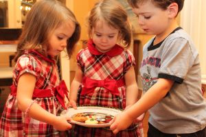 This is a shot of our kiddos carefully putting out Santa’s cookies – lest anyone be left out they are each holding the plate that holds one cookie each child selected as the perfect cookie for Santa. Love.