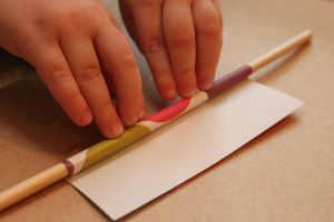 So we did it. With some wooden dowels paper and a fine tip glue pen. Little fingers practiced tuck, roll, glue, tuck roll glue… It was fun and the end product was pretty great!