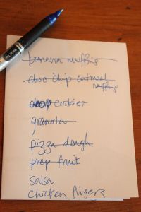 My hubby is the produce guy. He cuts, washes and preps all the melons and berries and packages them in zip lock containers for easy grabbing all week long. I’m the baker. This weekend the kids and I made an adapted version of these banana muffins (super easy and awesome tasting) and chocolate chip oatmeal muffins.