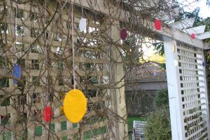 We had some Easter trial and error this week as well. We all painstakingly painted the salt-dough eggs we made with acrylic paint – they were masterpieces (remember this post?). We hung them out last weekend on our deck and loved looking at them all over our patio in the sunshine.