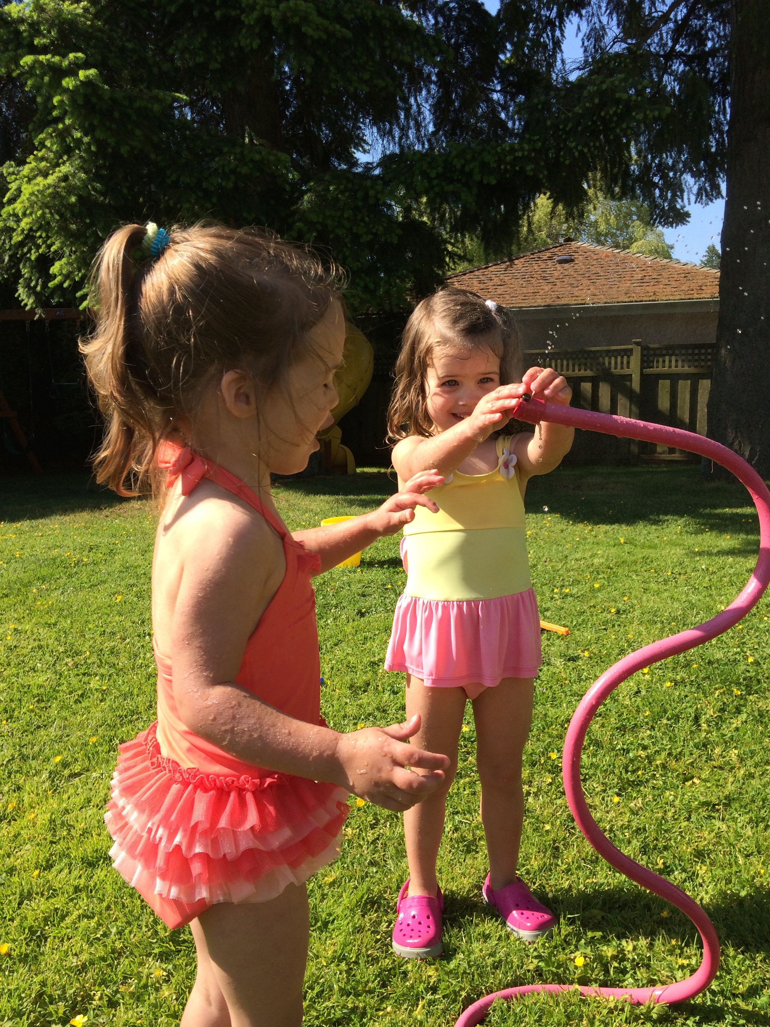 Another day I came home to the girls running through the mister and sprinkler with our nanny. I don’t know how summer hit us this week – but we are so lucky it did and we are loving every watery, warm minute of it.