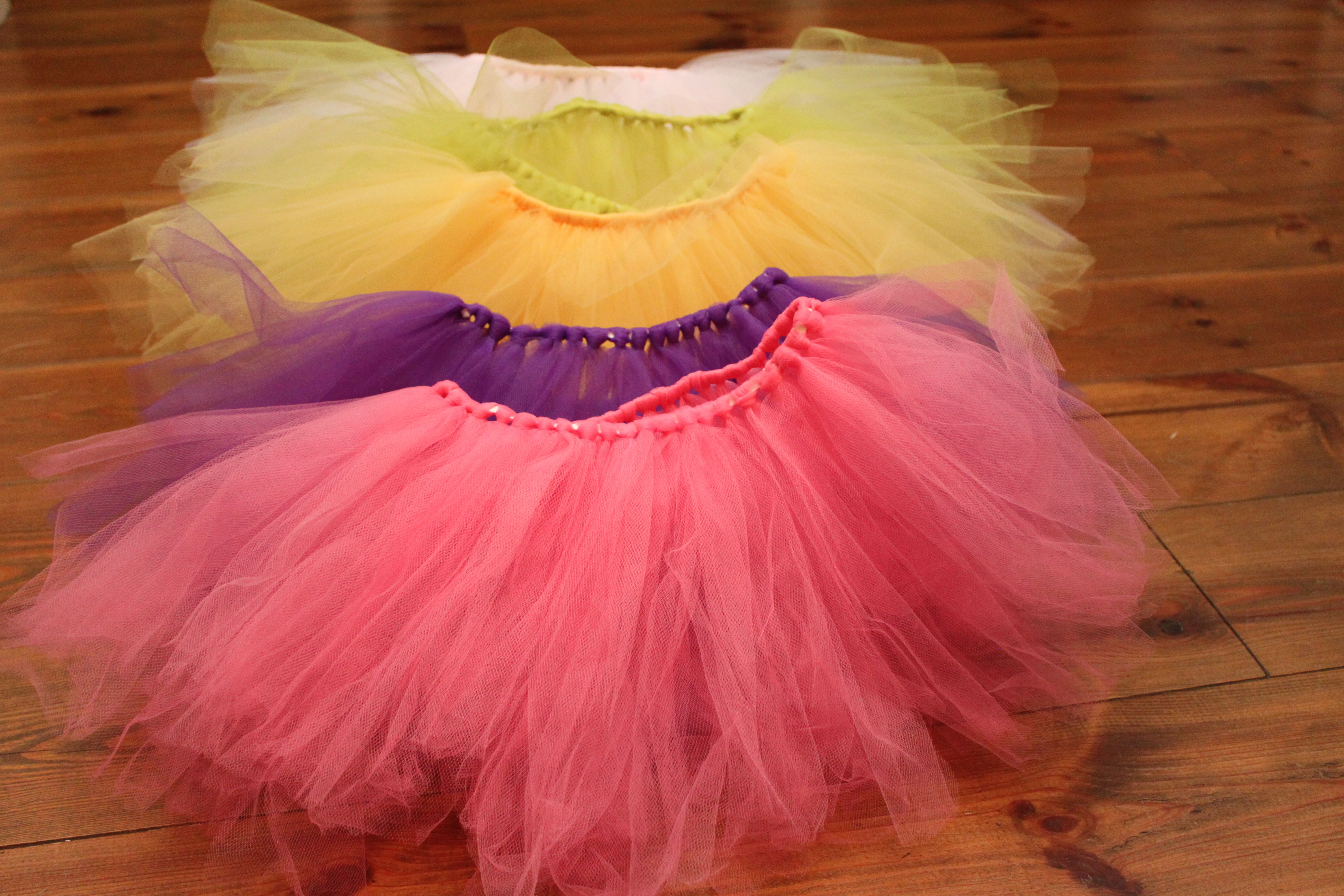 Next I started making tutus for each of the fairies to receive when they come to Pixie Hollow.  So far we have 8 done and 2 left to go!  They are super easy (but a little time consuming – thanks mom and cam for the help!) and there are tutorials all over the web – but here is my super simple 3 step process: